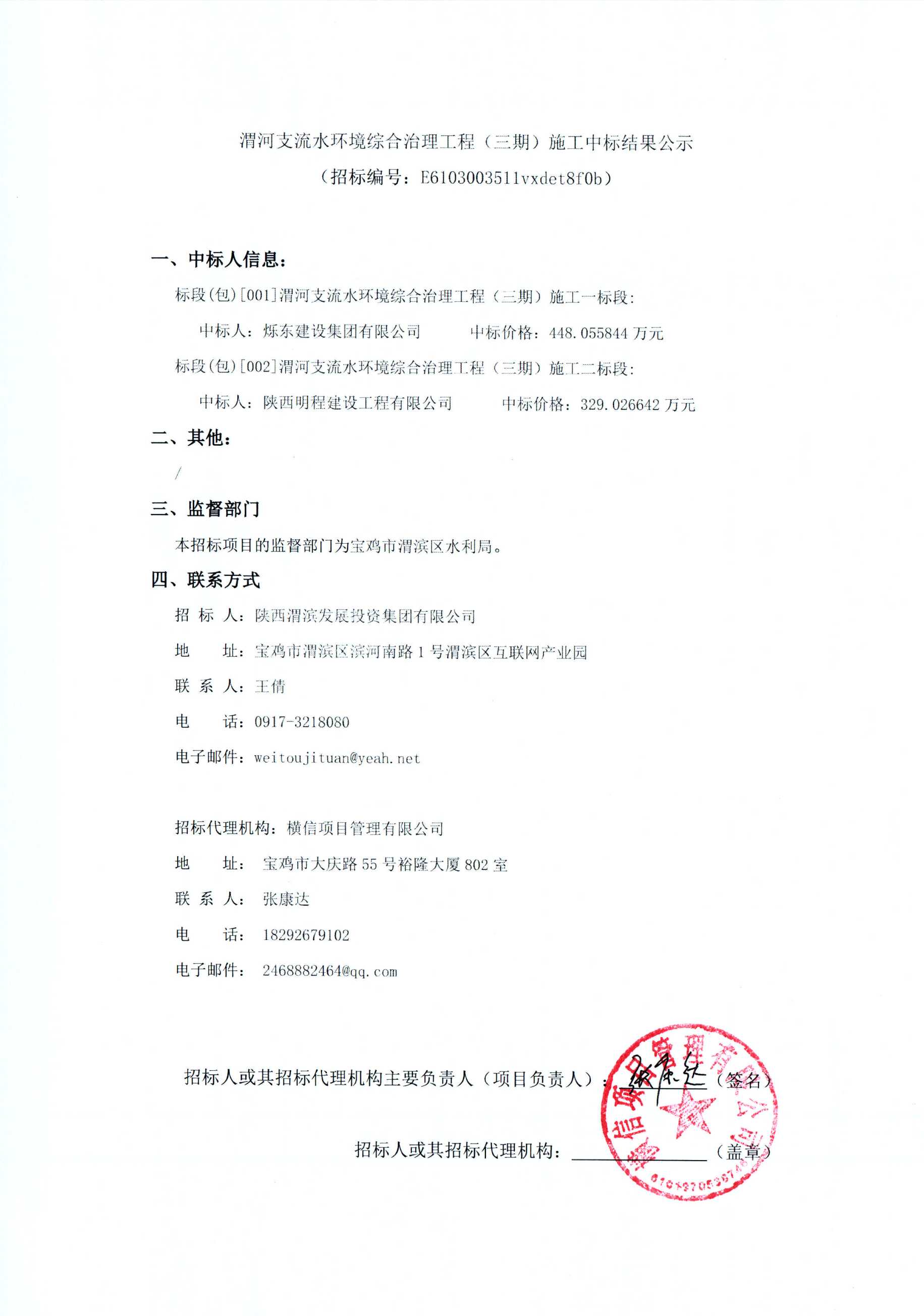 渭河支流水环境综合治理工程(三期)施工中标结果公示