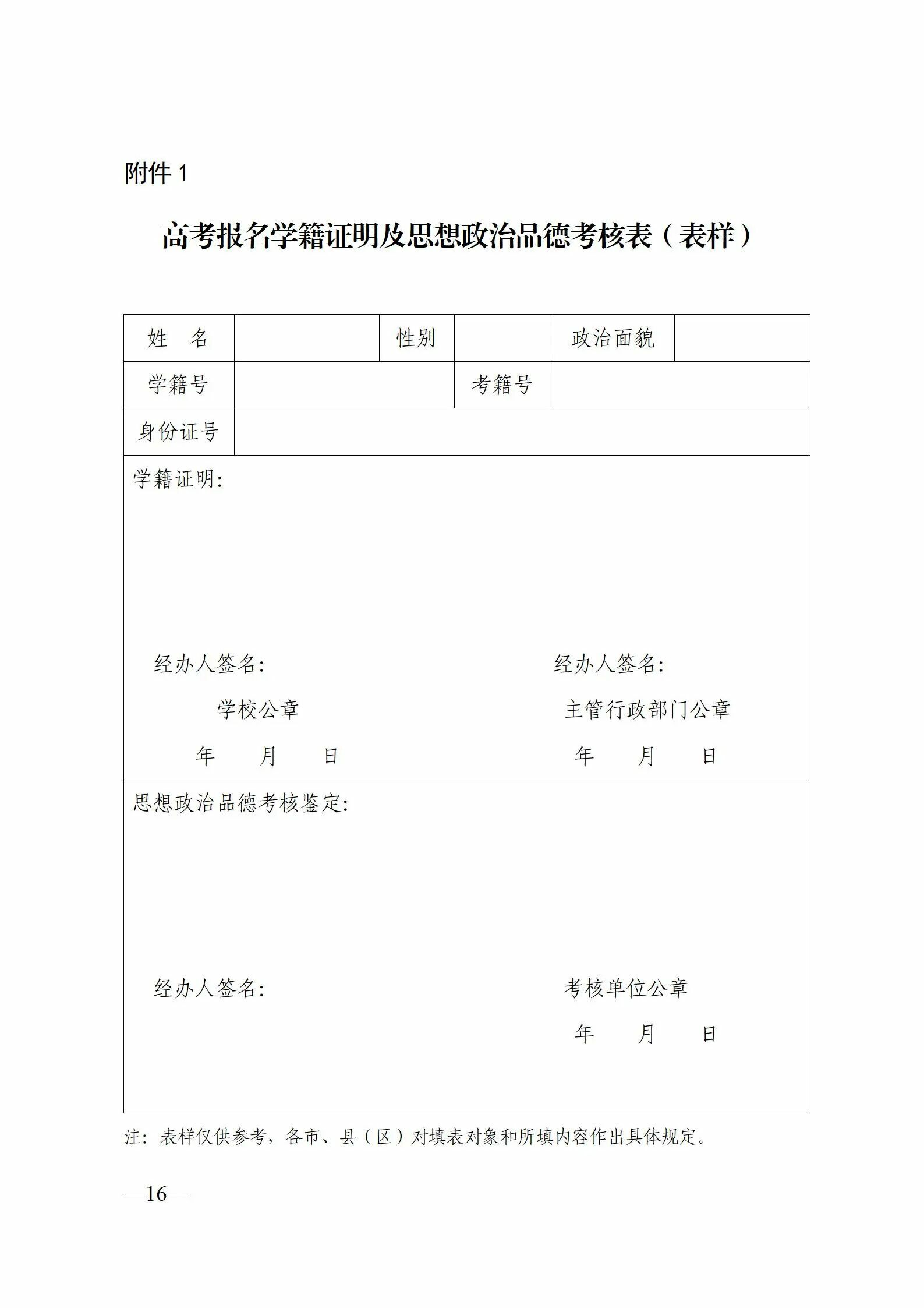 附件:1.高考报名学籍证明及思想政治品德考核表(表样)