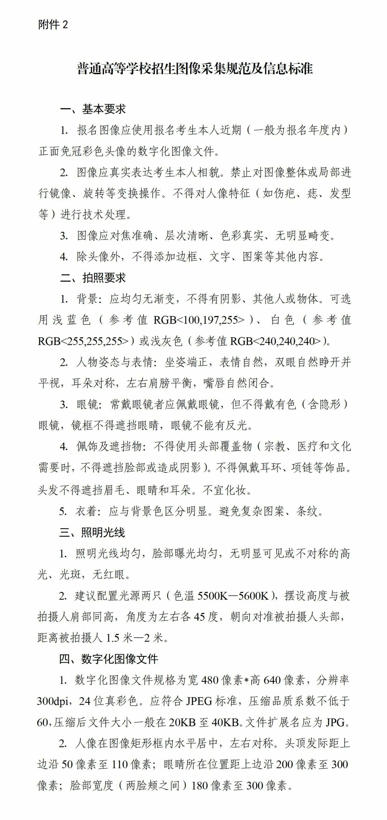 2.普通高等学校招生图像采集规范及信息标准