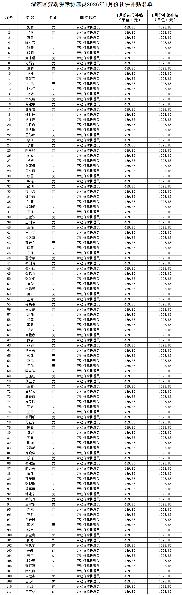 附件:渭滨区劳动保障协理员2026年1月份社保补贴名单