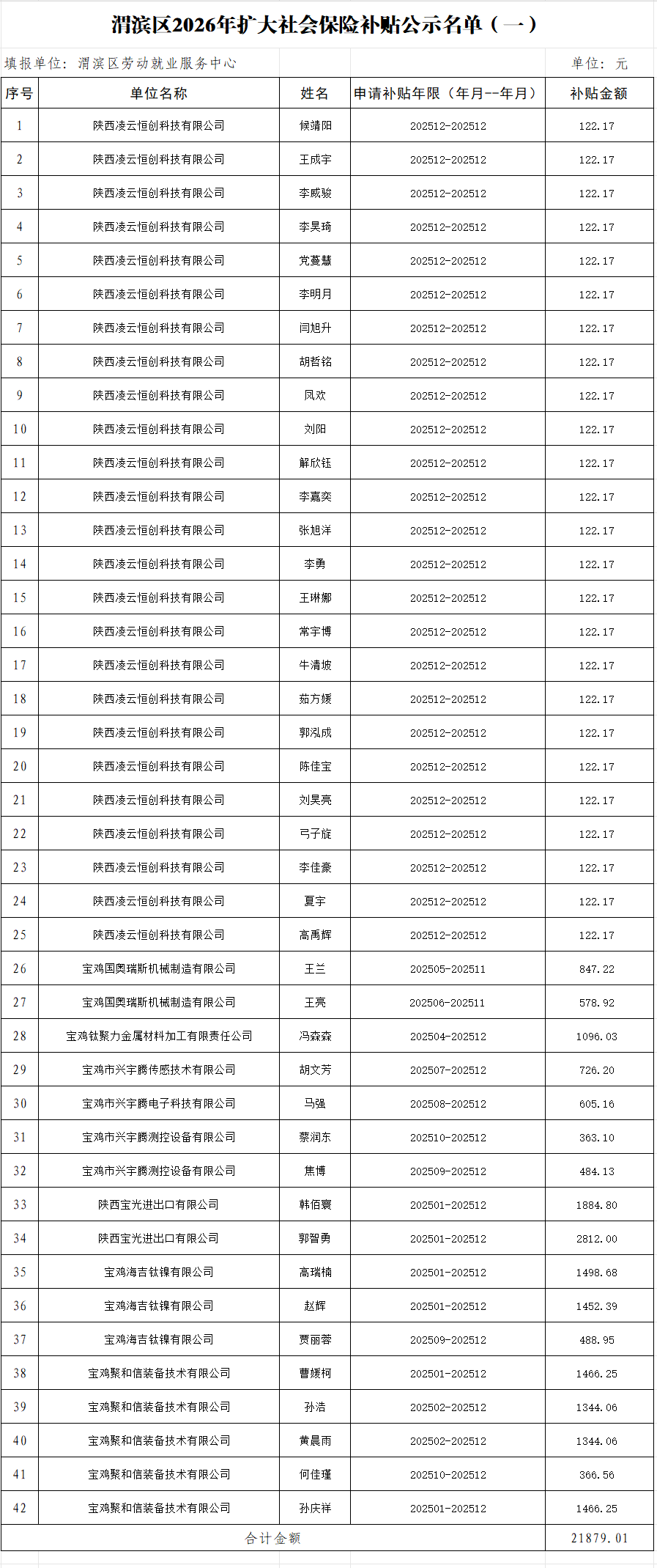 附件:渭滨区2026年扩大社会保险补贴公示名单(一)