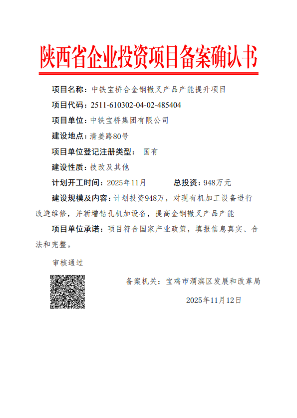 中铁宝桥合金钢辙叉产品产能提升项目