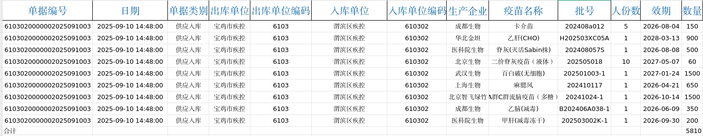 渭滨区疾控中心2025年9月免疫规划疫苗入库单据