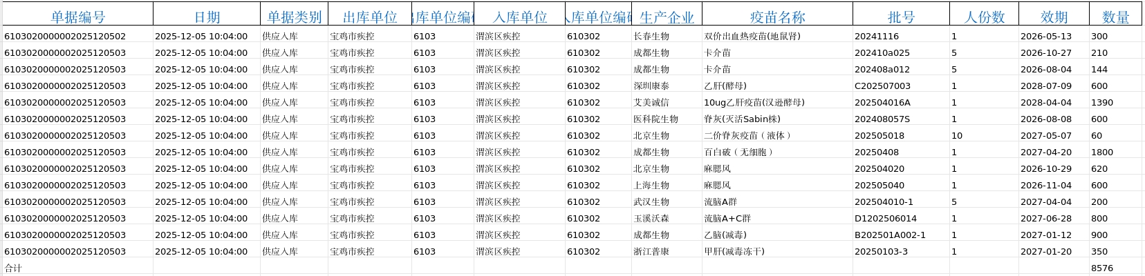 渭滨区疾控中心2025年12月免疫规划疫苗入库单据