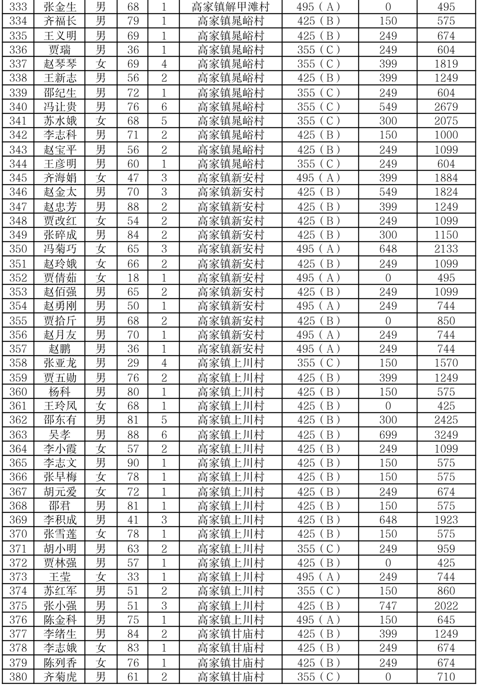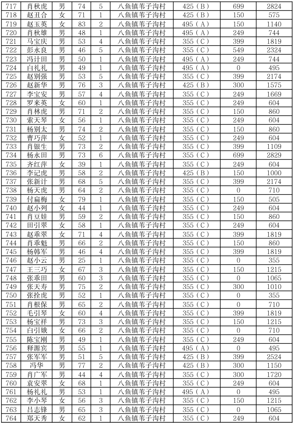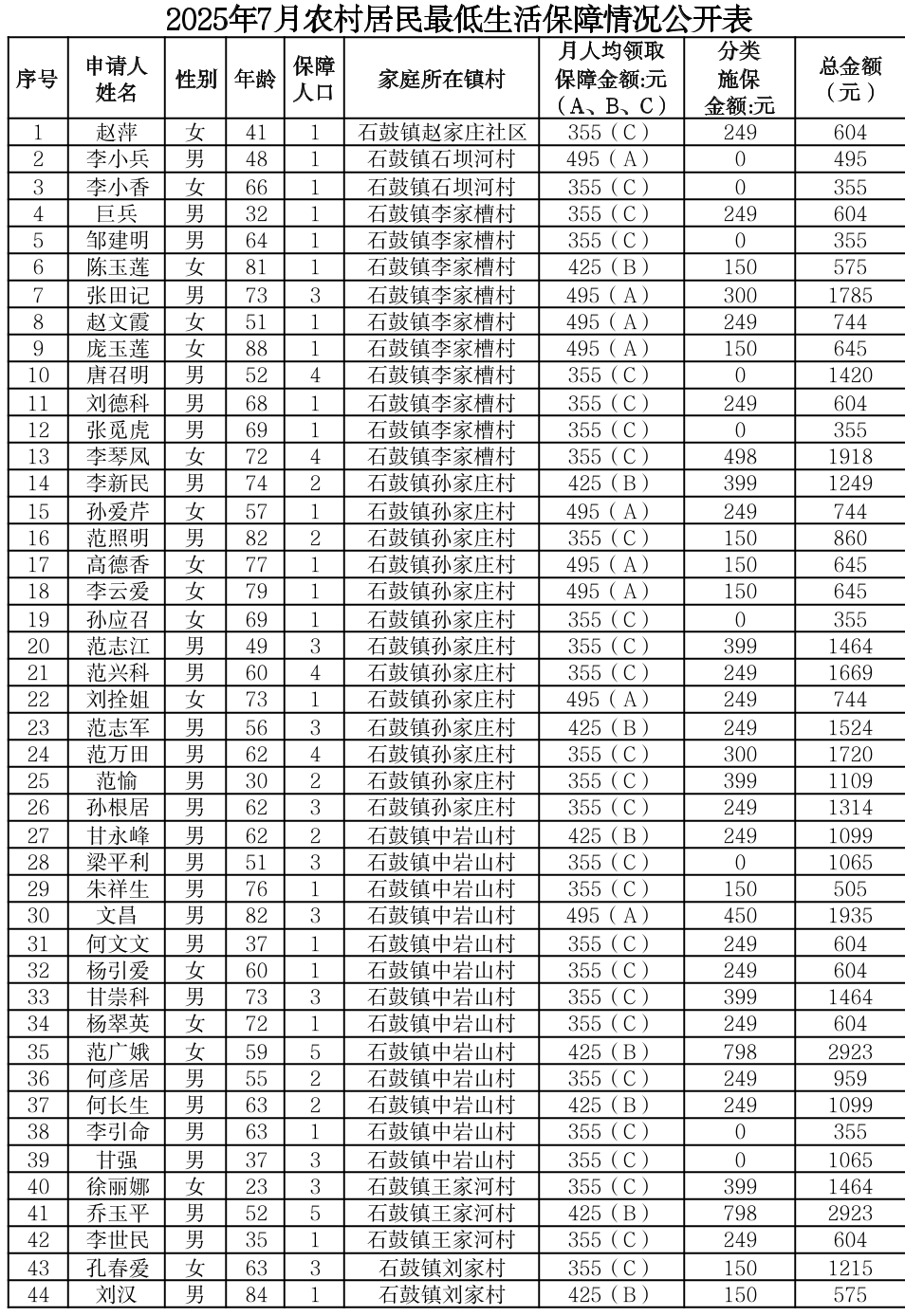 渭滨区2025年7月农村居民最低生活保障情况公开表