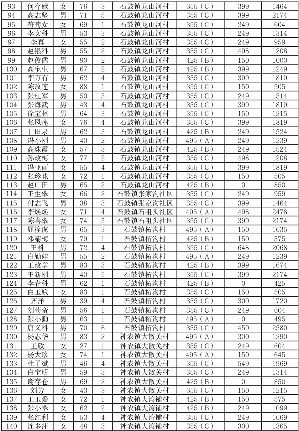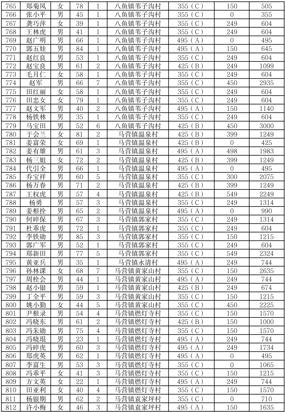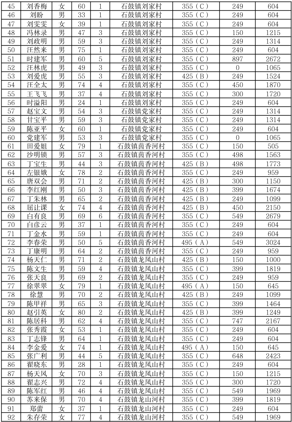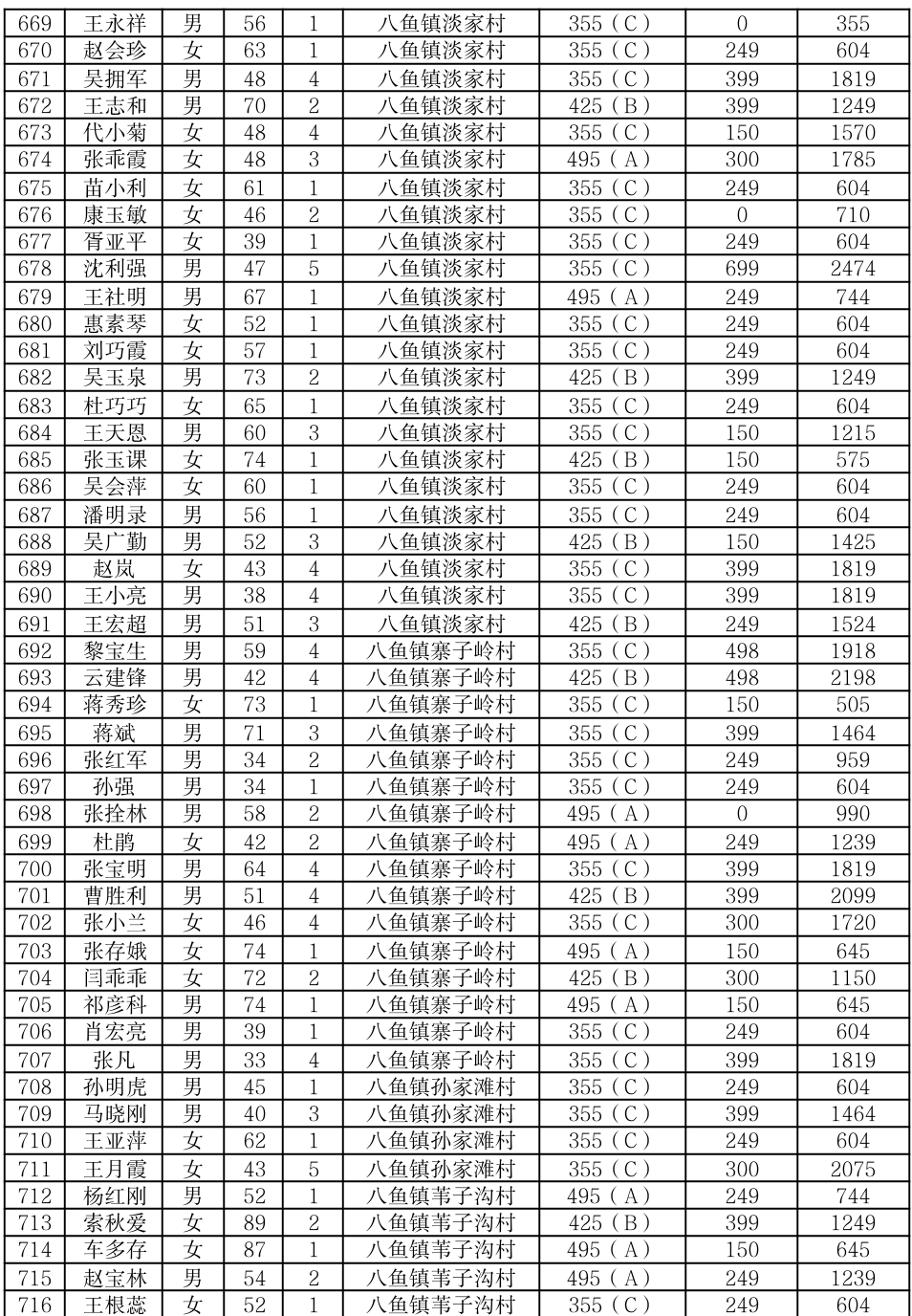 渭滨区2025年7月农村居民最低生活保障情况公开表
