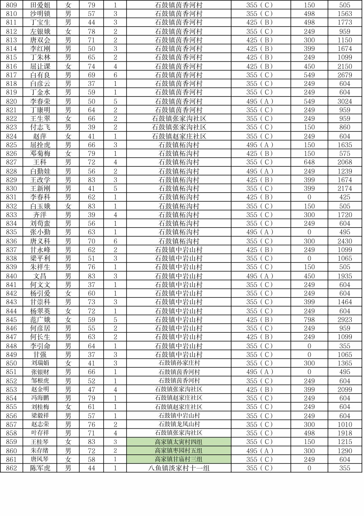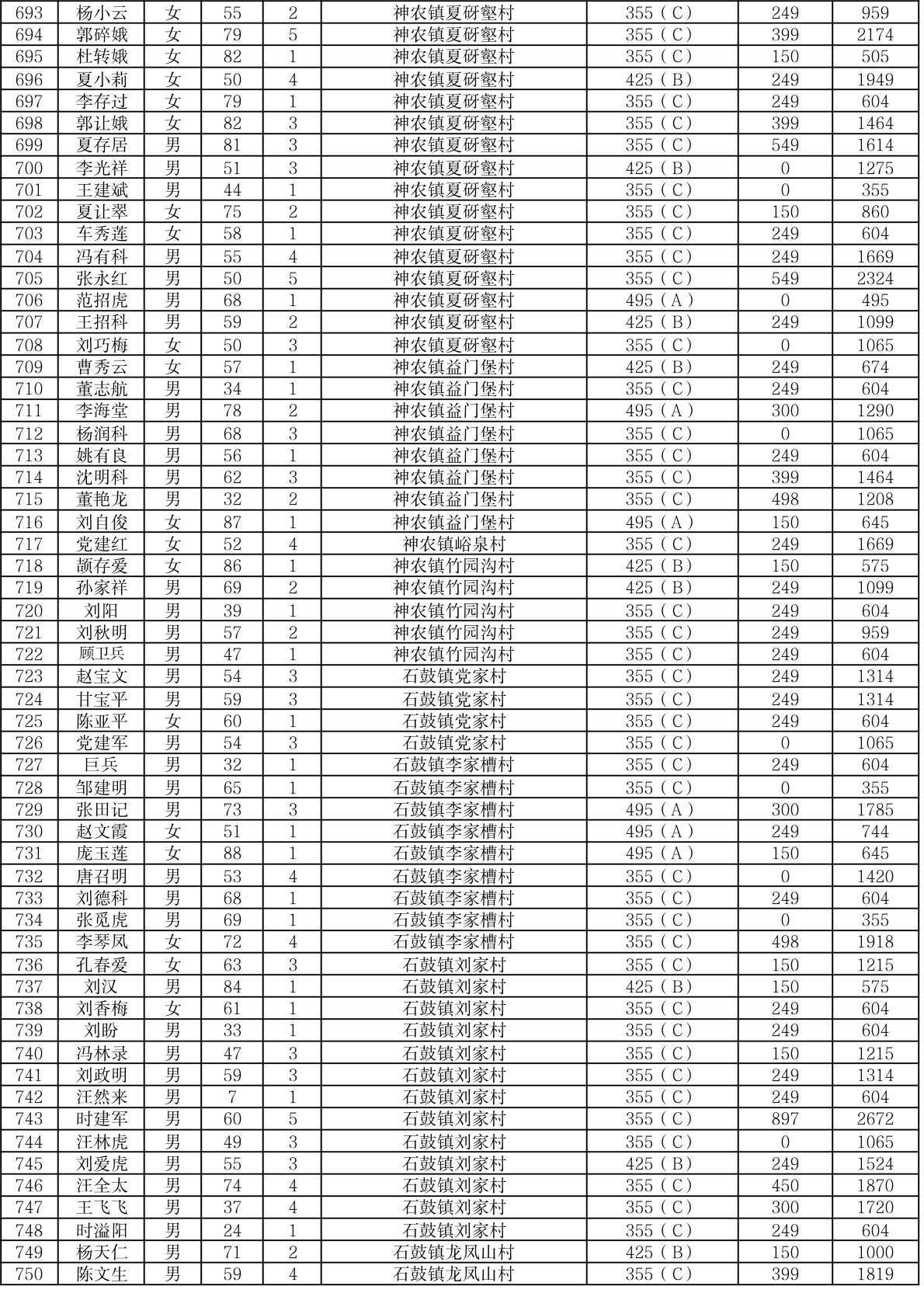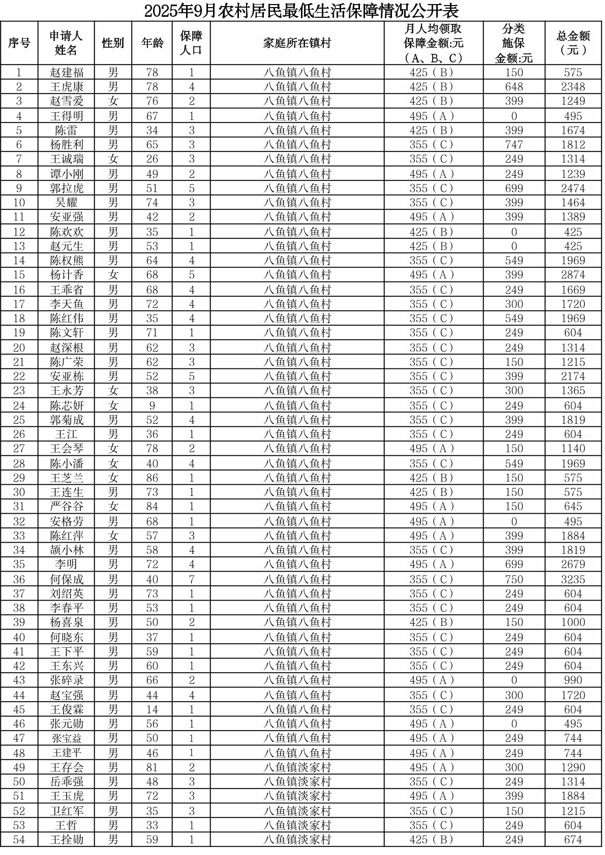渭滨区2025年9月农村居民最低生活保障情况公开表