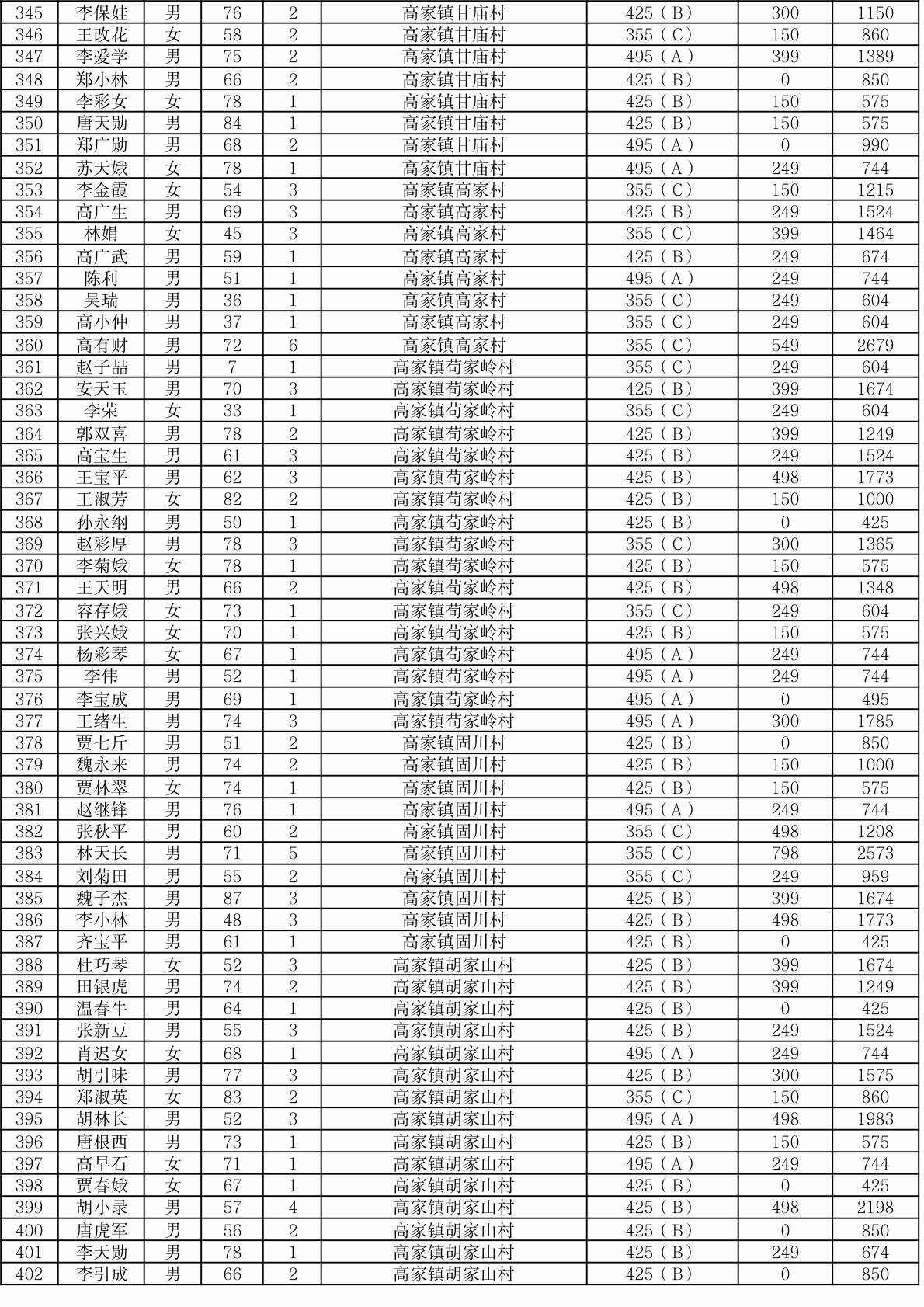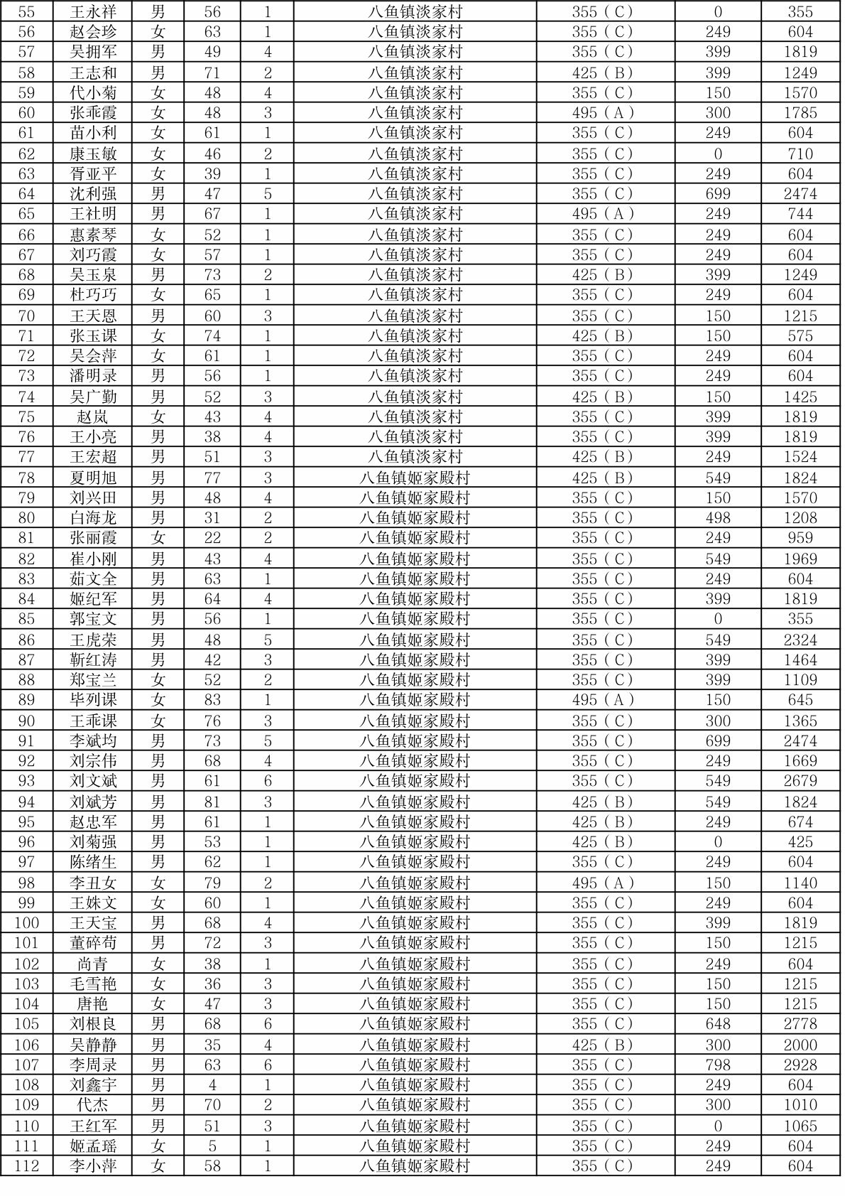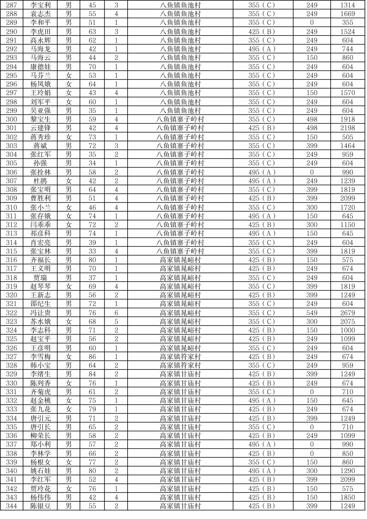 渭滨区2025年9月农村居民最低生活保障情况公开表