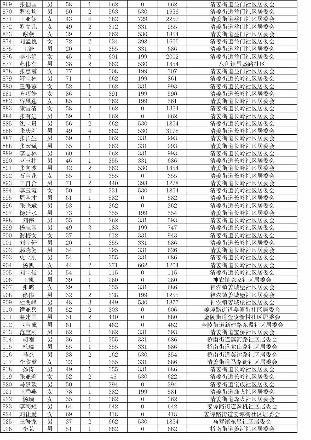 附件:渭滨区2026年3月城市居民最低生活保障情况公开表