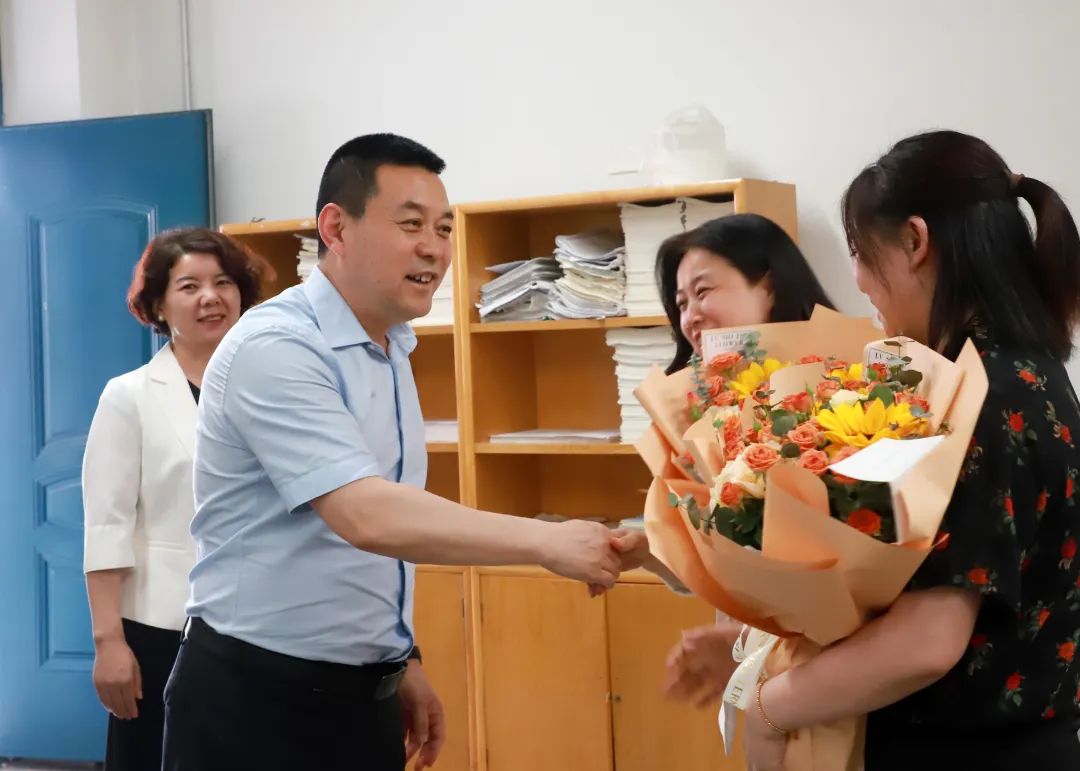 区长吴昱昕前往新建路中学看望慰问奋战在教育教学一线的初三教师。在慰问中,吴昱昕走进教师办公室,与他们进行亲切交谈,详细询问教师们的工作生活情况,并通过大家向备战中高考一线的广大教职工表示崇高的敬意和衷心的感谢。