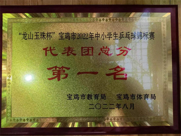 渭滨区荣获“龙山玉珠杯”宝鸡市2022年中小学生乒乓球锦标赛团体总分第一名